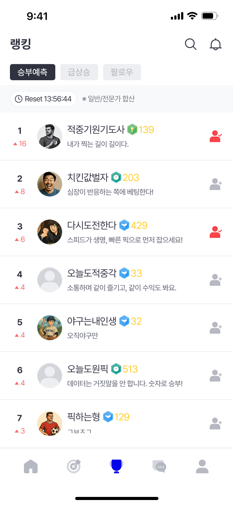 예측 결과와 활동이 반영된 랭킹으로 나의 성장 과정을 확인하세요.