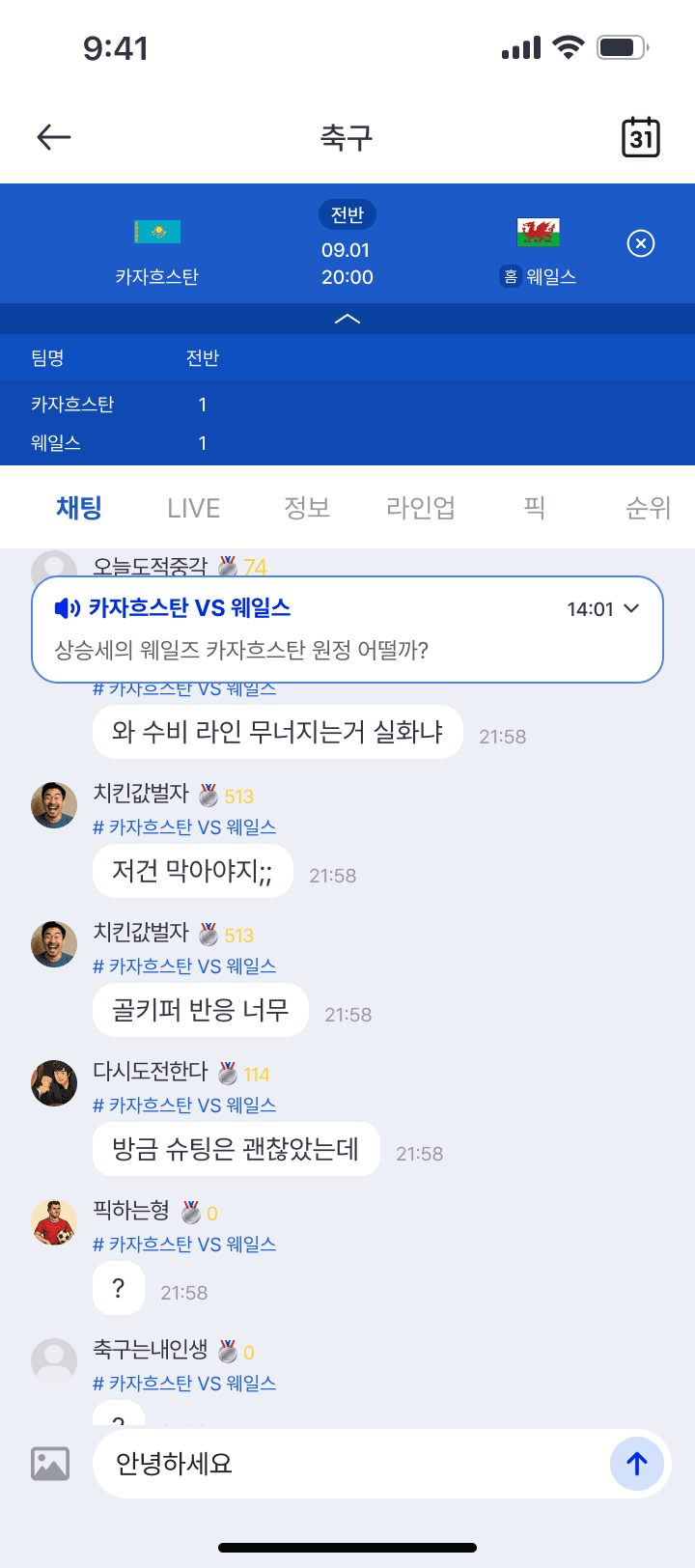 경기를 보며 느낀 감정과 생각을 팬들과 실시간으로 공유하세요.